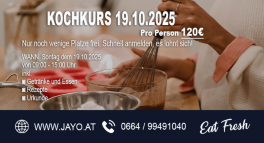 Bin mit dabei! Jay O Food, Kochkurs am 19.10.2025